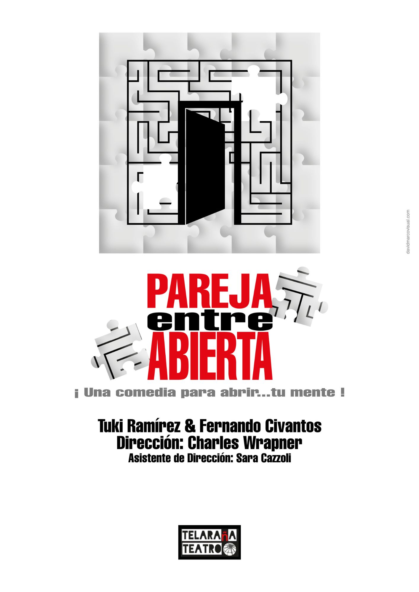 Despues de una año de preparación os traemos a las tablas esta divertida comedia inspirada en la obra de Franca Rame y su esposo Darío Fo «Pareja abierta». Pero como los telaraños no nos conformamos con nada hemos hecho una adaptación que se separa bastante de la obra original trayéndola a nuestros días e incluyendo temas y tramas que para nada estaban en la version inicial. Por eso hemos decidido llamarla «Pareja entreabierta»