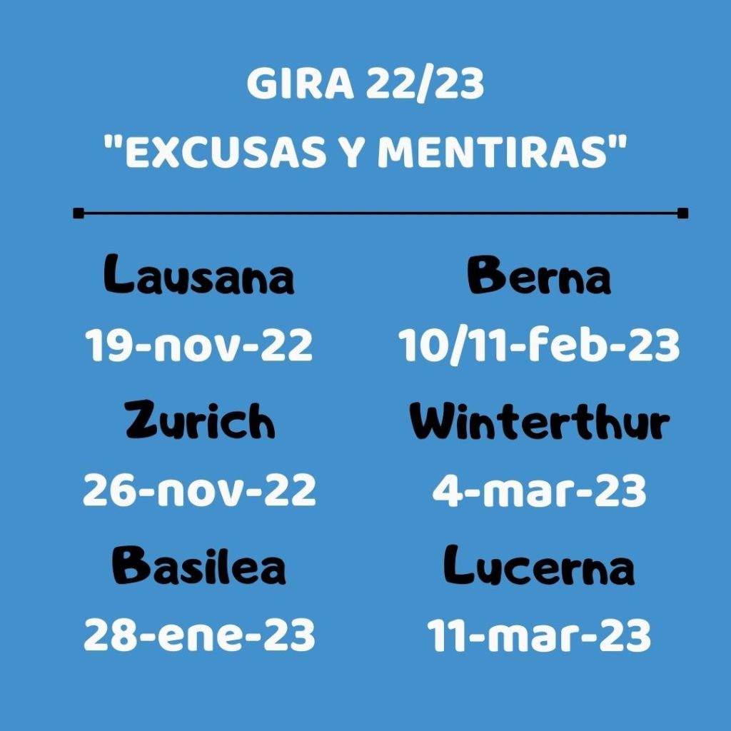 - En Berna el viernes 5 y sábado 6 de abril de 2024 a las 19 horas en el «Theater am Käfigturm» en Spitalgasse 4.