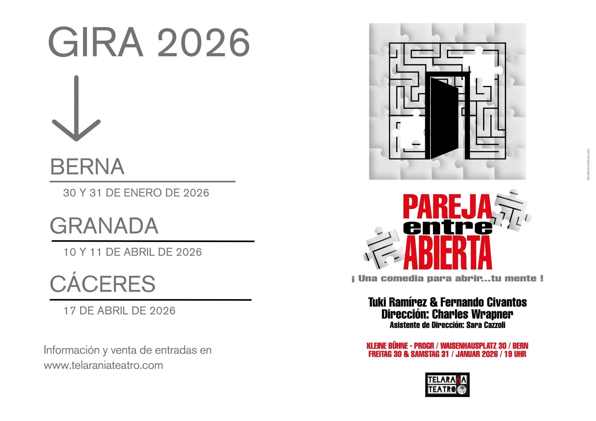 - En Berna el viernes 30 de enero y el sábado 31 de enero de 2026 a las 19.00 horas en el Kleine Bühne del PROGR.